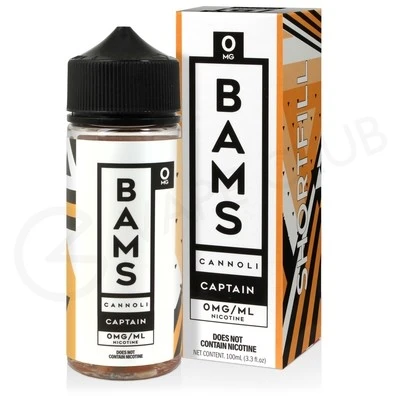 Captain 100ml shortfill e-liquid by Bams Cannoli fuses the sugary taste of a fruity pebbles cereal with the distinct flavour of a cannoli. Notes of key lime cream and rich, buttery pastry are complemented by a medley of mixed fruit and nutty flavours. The result is a unique breakfast blend with an Italian twist.