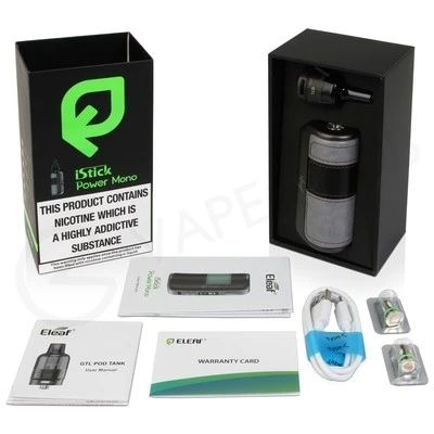 The Eleaf iStick Power Mono vape kit is a robust option that can be customised to deliver your ideal vape. Itโs powered by a built-in 3500mAh battery, which lets you vape for longer and delivers an 80W max power output. Itโs designed with DTL (Direct To Lung) vaping in mind and the included GTL pod tank can hold up to 2ml of e-liquid. This tank is compatible with the Eleaf GTL coils, and two are included to get you started.