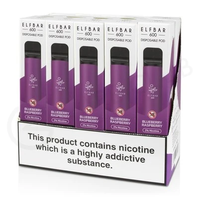 The Elf Bar Blueberry Raspberry x10 multi pack is the most convenient way to get more of your favourite Elf Bars in bulk. Each Elf Bar will easily out last 20 cigarettes and deliver up to 600 puffs. There is no need to refill or recharge when one is finished, just replace it with a fresh one. This makes them an ideal choice for anyone who is looking for a hassle-free vape experience.