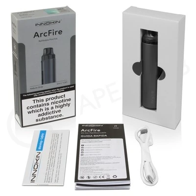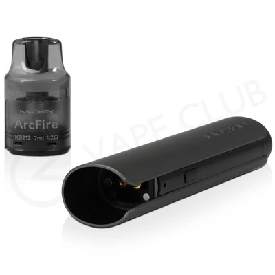 The Innokin Arcfire pod vape kit is a pocket-friendly and easy-to-use refillable vape. Powered by a built-in 650mAh battery, this compact kit can last all day and provides an MTL (Mouth To Lung) inhale. Thanks to the built-in coil pods, maintenance is kept to a minimum โ when the coil inside is used up, simply replace the pod. One pod is included in the box, so youโll have everything you need to get started โ just add e-liquid.