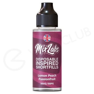 Lemon Peach Passionfruit 100ml shortfill e-liquid by Mix Labs fuses fruity citrus notes for a layered vape. Lemon brings a zesty flavour that mixes with the soft taste of peach and sweet passionfruit.