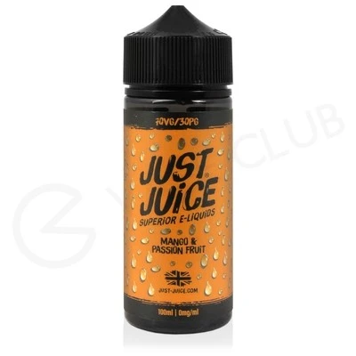 Mango & Passion Fruit shortfill e-liquid by Just Juice complements the juicy taste of ripe mango with the sweet notes of passion fruit to deliver an exotic vape.
