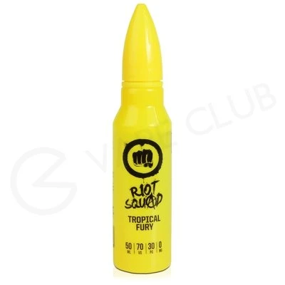 Tropical Fury shortfill e-liquid by Riot Squad is a fruit blend with a sweet and sour in taste. On inhale, ripe notes of pineapple are combined with sweet mango for a juicy aftertaste, whilst on exhale citrus notes develop to create a bittersweet finish.