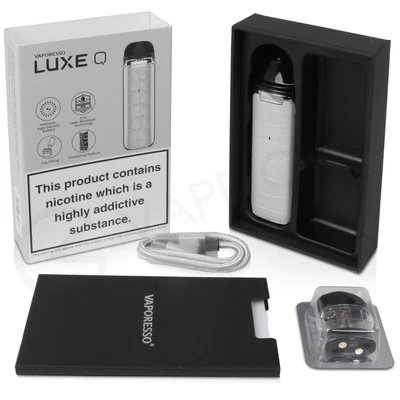 The Vaporesso Luxe Q pod kit is a compact, beginner-friendly option that’s simple to use and maintain. Small enough to fit in your pocket, the Q still boasts a large capacity 1000mAh battery that provides up to a full day of vaping between charges. Designed to deliver a vape that feels close to a cigarette, it produces a small amount of vapour for MTL (Mouth To Lung) vaping. Containing everything you need to get started, each kit includes a battery device as well as two refillable 2ml Q pods that can be paired with an e-liquid of your choice.